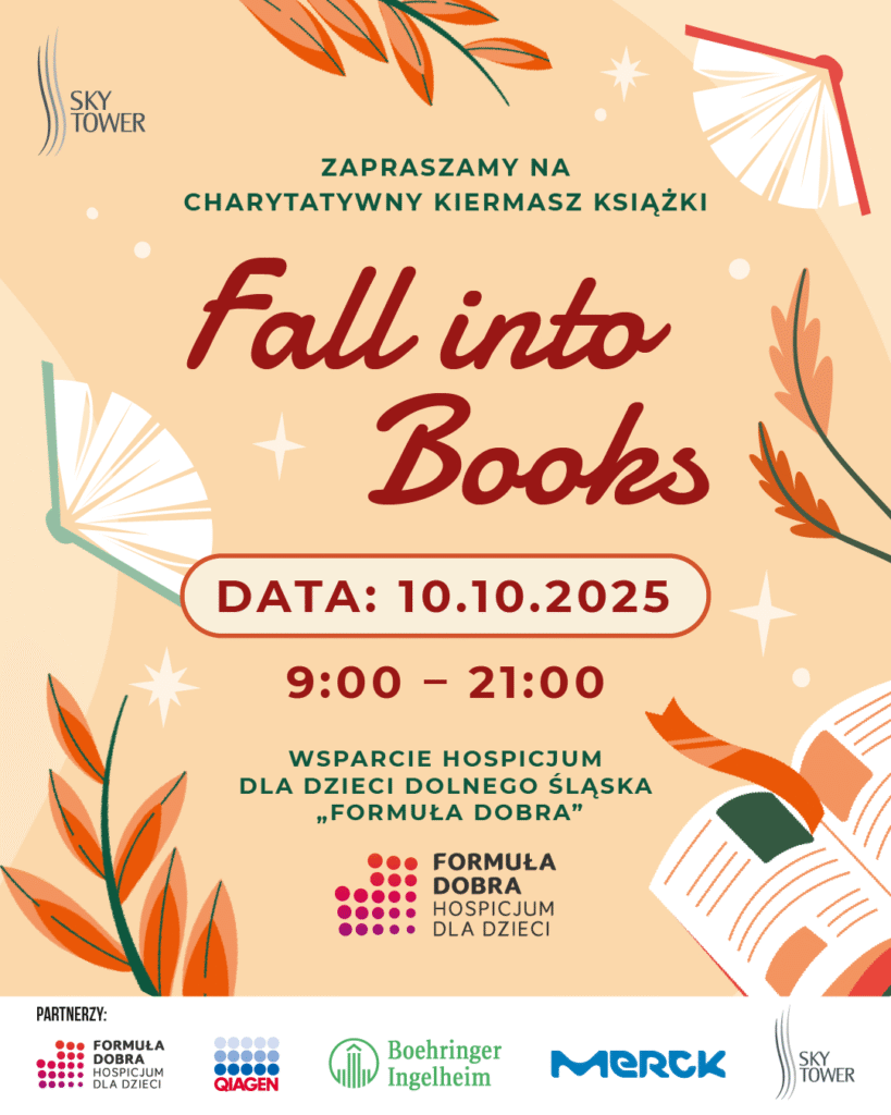 Już 10. października, w piątek, w godzinach 9:00–21:00 zapraszamy Was do Galerii Sky Tower we Wrocławiu na wyjątkowy kiermasz książek, z którego całkowity dochód wesprze podopiecznych naszego hospicjum.