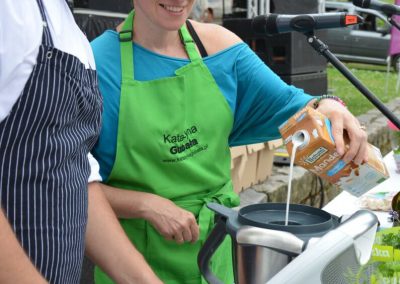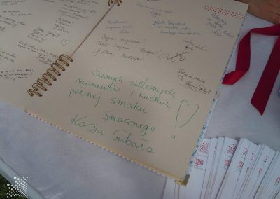 Tradycja świętowania w Polsce jest zdecydowania związana ze stołem. Był więc u nas i stół. Katarzyna Gubała podarowała trochę swojej werwy, kreatywności – już na etapie przygotowań, a w Karpaczu ujęła wszystkich uśmiechem i kulinarnymi wege przysmakami. W tym roku gotowała w towarzystwie niezastąpionego Nikodema Bąka – szef kuchni Green Mountain Hotel (Dziękujemy kadrze Green Mountain za całe wsparcie!) W Strefie Dobrego Smaku dzieciaki zajadały się budyniem jaglanym i sorbetem truskawkowym, dorośli nie mogli się nadziwić jak pyszne może być pesto lawendowe, a wszystkich zachwyciły słodkie i zdrowe kulki mocy! To wszystko było możliwe dzięki ludziom i firmom, które podzieliły się z nami swoimi produktami: