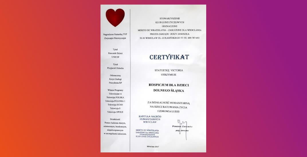 Strona główna » Aktualności » Nasza działalność doceniona przez Klub Ludzi Życzliwych