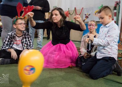 Był też spektakl – muzobajka „Ślady Mikołaja”, który zrobił dla nas „Wytwórnik muzyczny”. (Dziękujemy, że byłyście z nami dziewczyny, za piosenki, muzykę, akcję, energię, uśmiech…)