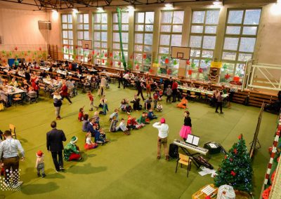 Wiadomo było, że gości będzie wielu – i małych i dużych. Pomocnicy Świętego Mikołaja przygotowali więc stoły, żeby ich przyjąć jak należy. Przyjeżdżać zaczęły kolejne przysmaki: zupy, pierogi, naleśniki, kopytka, łazanki, sałatki. To dar serca od ludzi, którzy kochają przygotowywać jedzenie i znają się na tym jak mało kto, wspierają nas często od wielu lat.