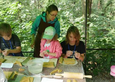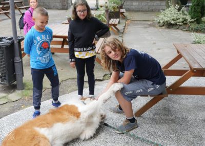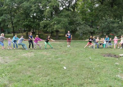 Ania i Filip, nasi wolontariusze, zadbali o zabawy i konkurencje, w tym angażującą wszystkich zabawę w „zadanie dnia”. Można było wylosować przeróżne rzeczy: „sprawdź jaki rozmiar butów mają uczestnicy”, „uczesz się w śmieszny sposób”, „pomóż w stołówce przy posiłkach”, albo „zjedz ciastko bez użycia rąk”… a ciastko było, na dodatek z kremem 😀