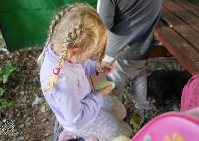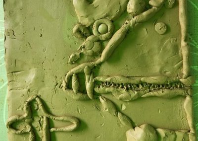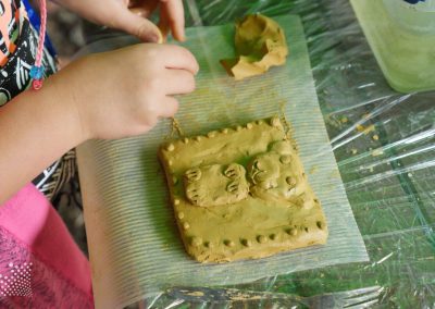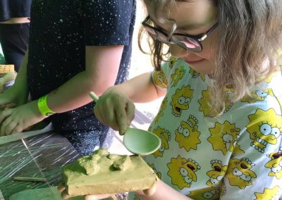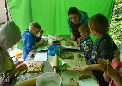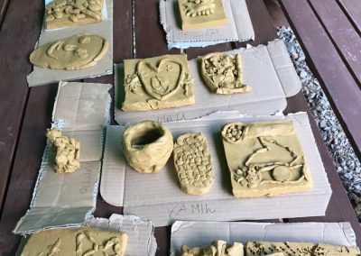 Joasia pomogła wykorzystać dwa worki z gliną – powstały płaskorzeźby i rzeźby, a ugniatanie gliny dało mnóstwo przyjemności (i małym i dużym).