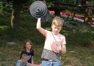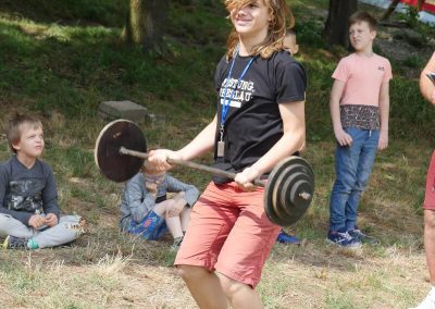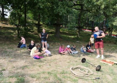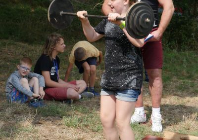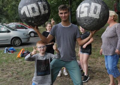 Pan Mariusz specjalista od crossfit, przywiózł sztangę i ciężarki, linę – i już mieliśmy budzące ogrom emocji konkurencje sportowe.